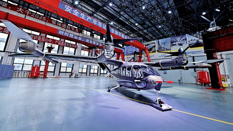 2025年,9月29日,国内首款载客运输eVTOL在四川成都正式下线。图据新华社